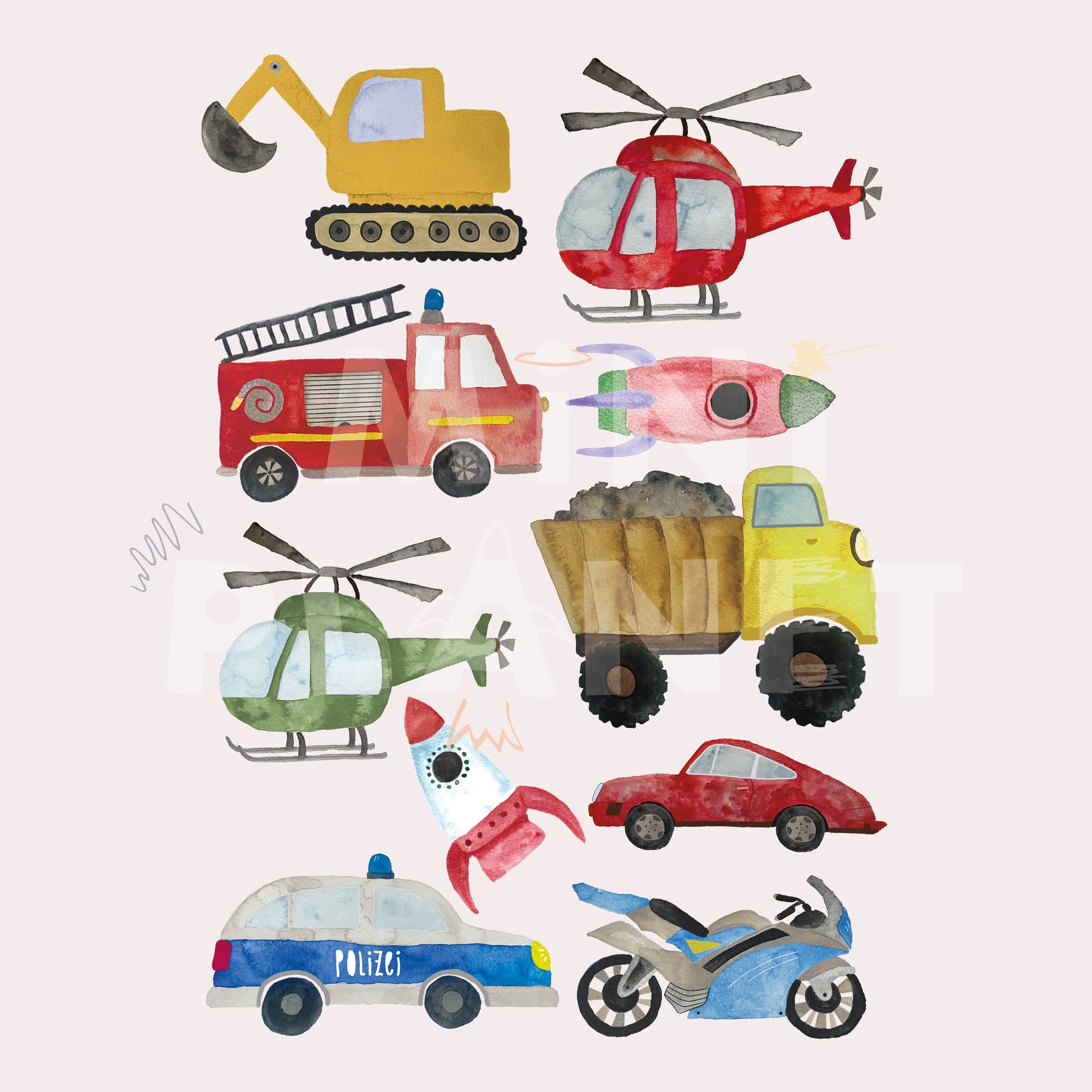 Bogen mit 10 Fahrzeug-Motiven, individuell zuschneidbar