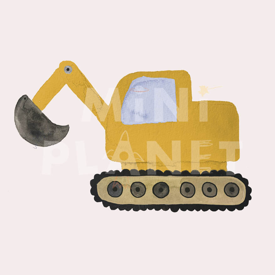 Motiv: Gelber Bagger mit beweglicher Schaufel und robustem Design