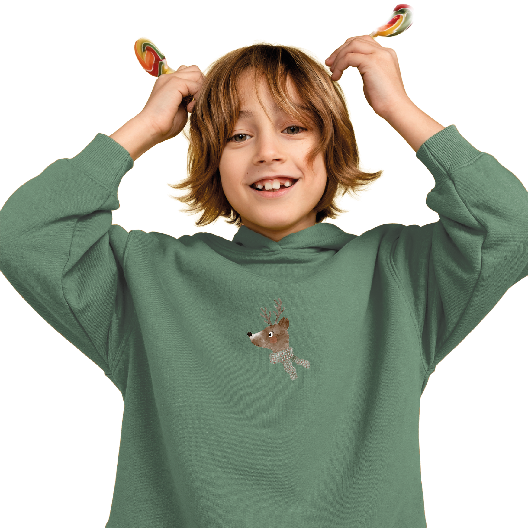 Bringe winterlichen Charme auf deine Kinderkleidung mit unserem Hirsch-mit-Schal-Bügelbild!