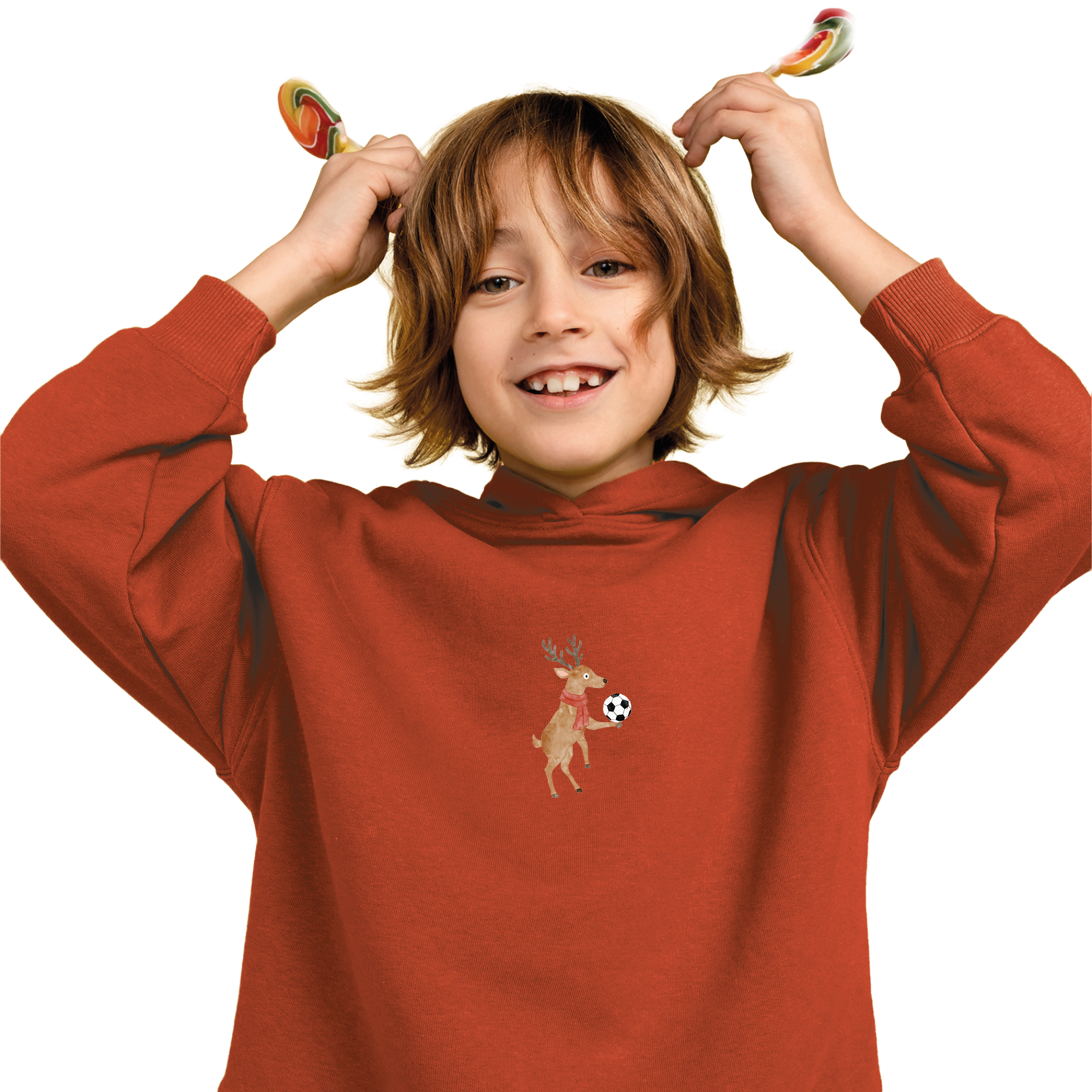 Mach Kinderkleidung zum echten Blickfang mit unserem Hirsch-mit-Fußball-Bügelbild!