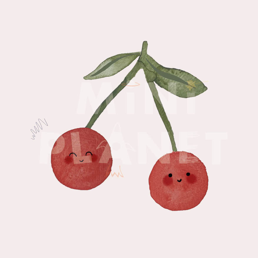 Motiv: Kirschen mit fröhlichen Gesichtern und liebevollen Details