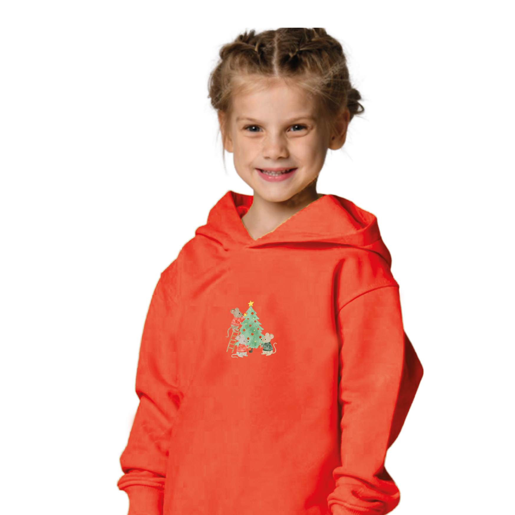 Bringe festliche Magie auf deine Kinderkleidung mit unserem Mäuse-schmücken-Weihnachtsbaum-Bügelbild!