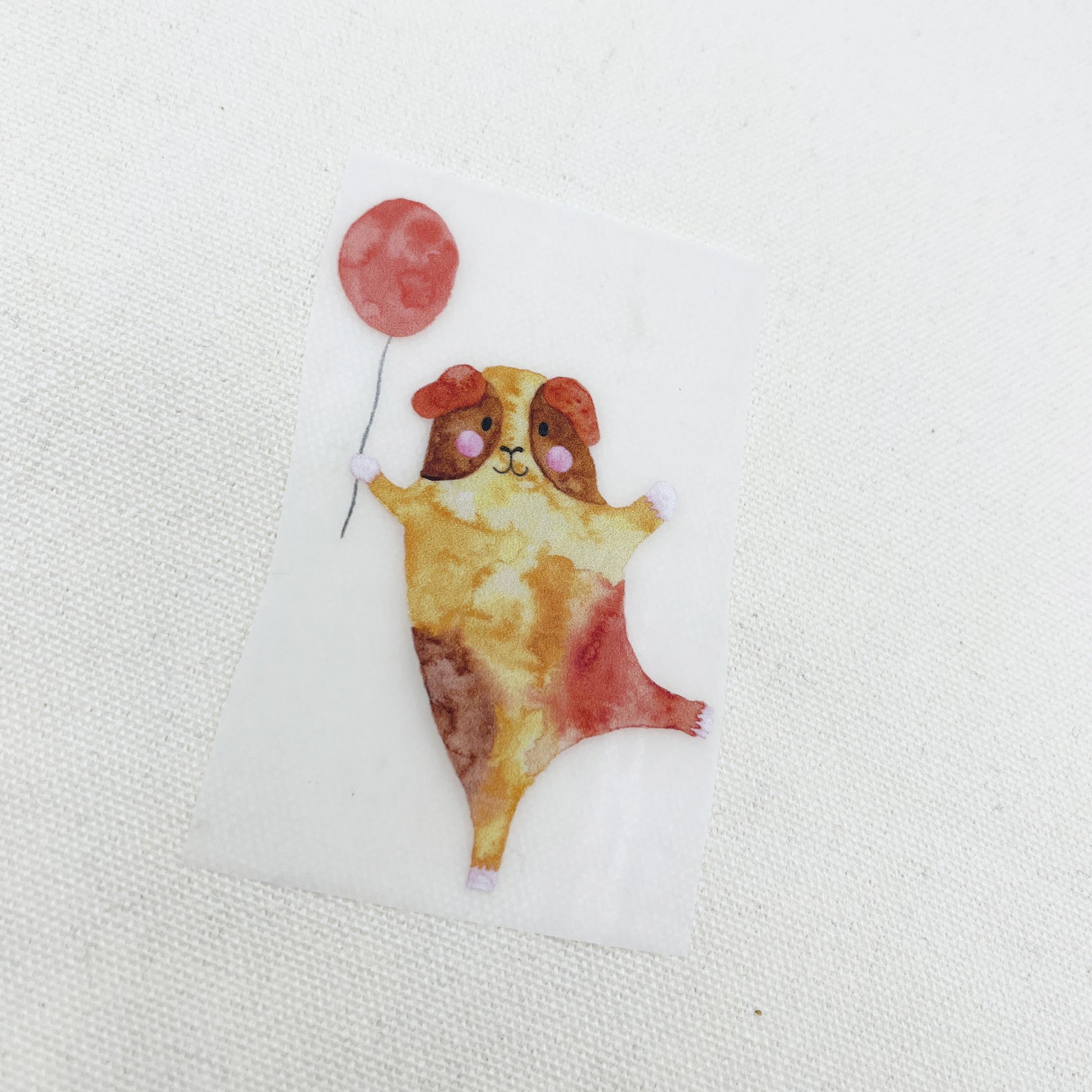 Süßes Bügelbild "Meerschweinchen mit Luftballon" – DIY Textildekoration für Kinderkleidung