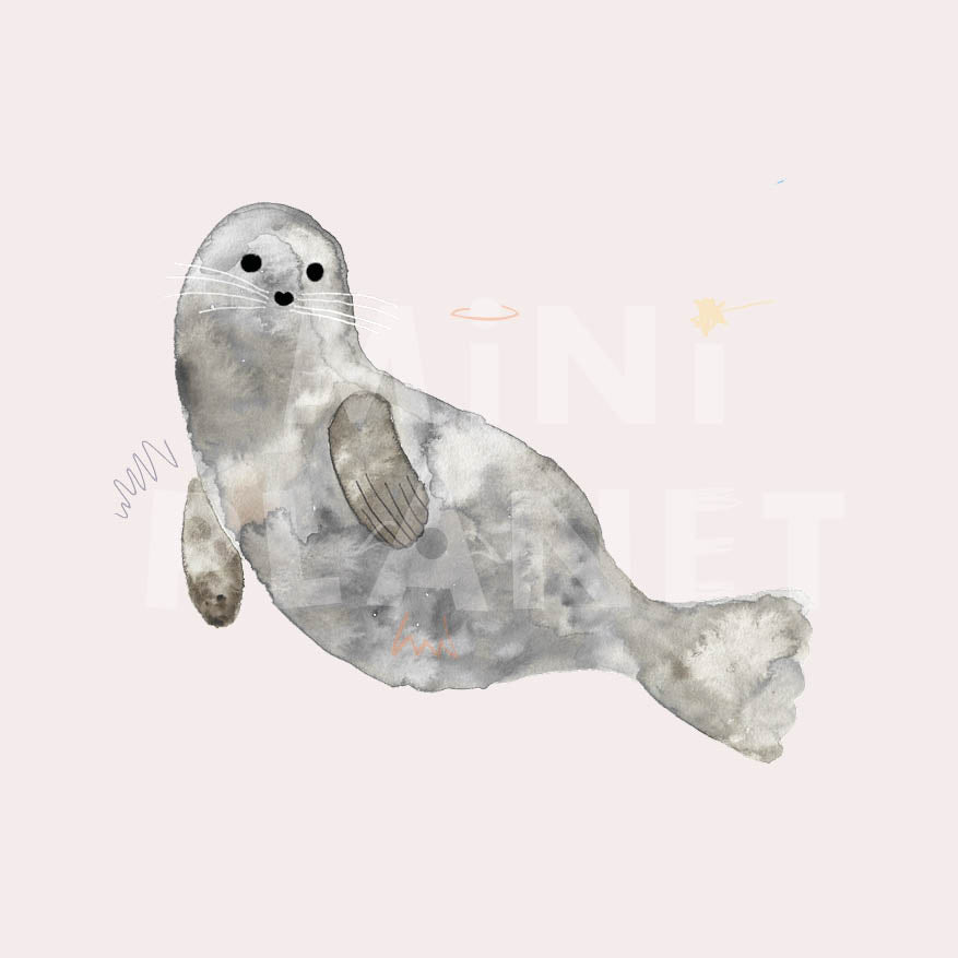 Motiv: Niedliche Robbe mit fröhlichen Details