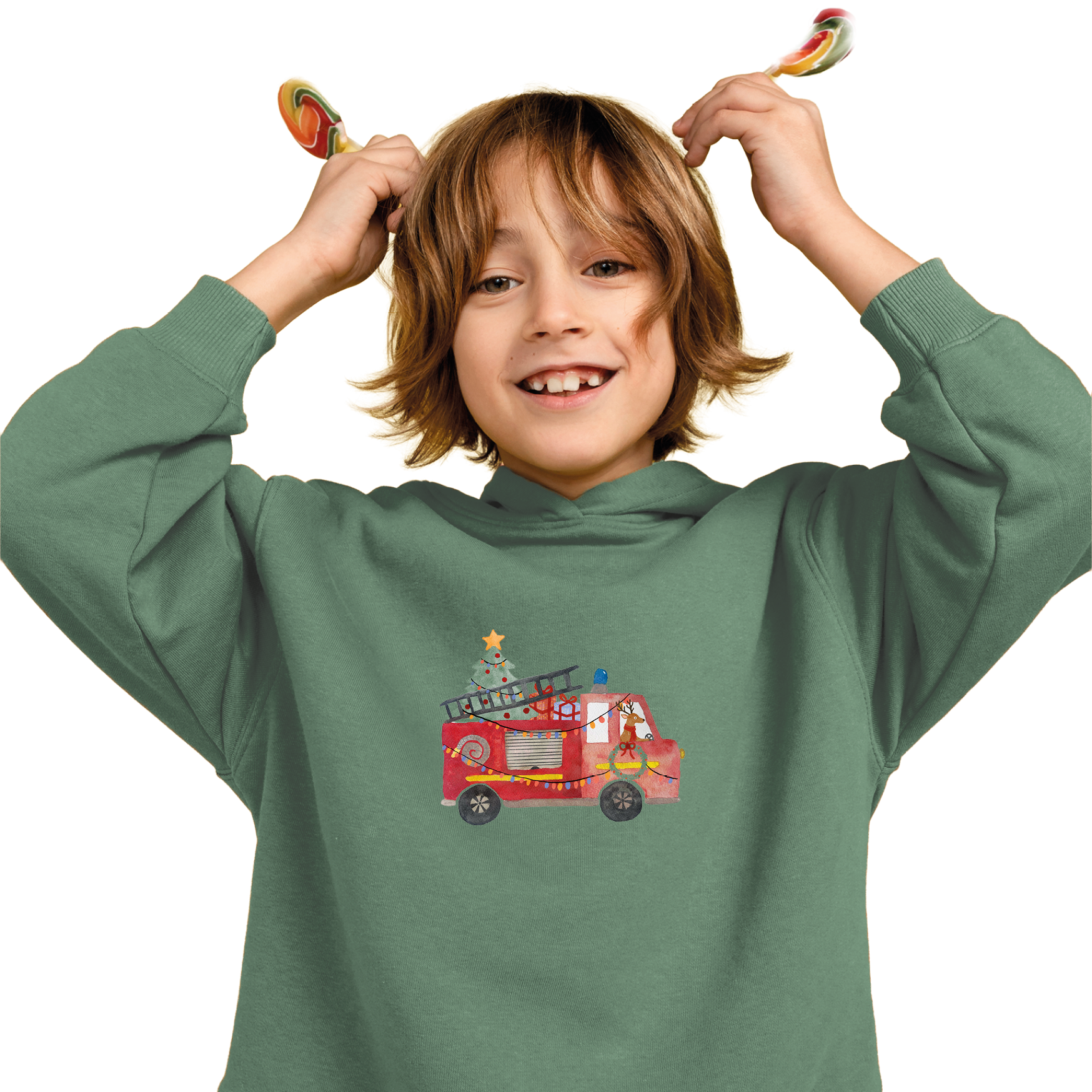 Mach deine Kinderkleidung zu etwas ganz Besonderem mit unserem Weihnachtsfeuerwehr-Bügelbild!