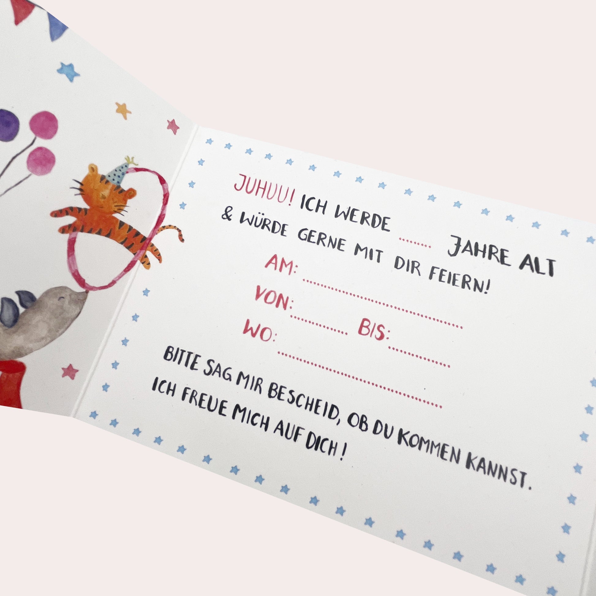 Ob lustige Spiele, aufregende Kunststücke oder eine magische Show – mit diesen Einladungskarten wird die Vorfreude auf die Feier besonders groß. Einfach ausfüllen, verteilen und die Party kann beginnen.