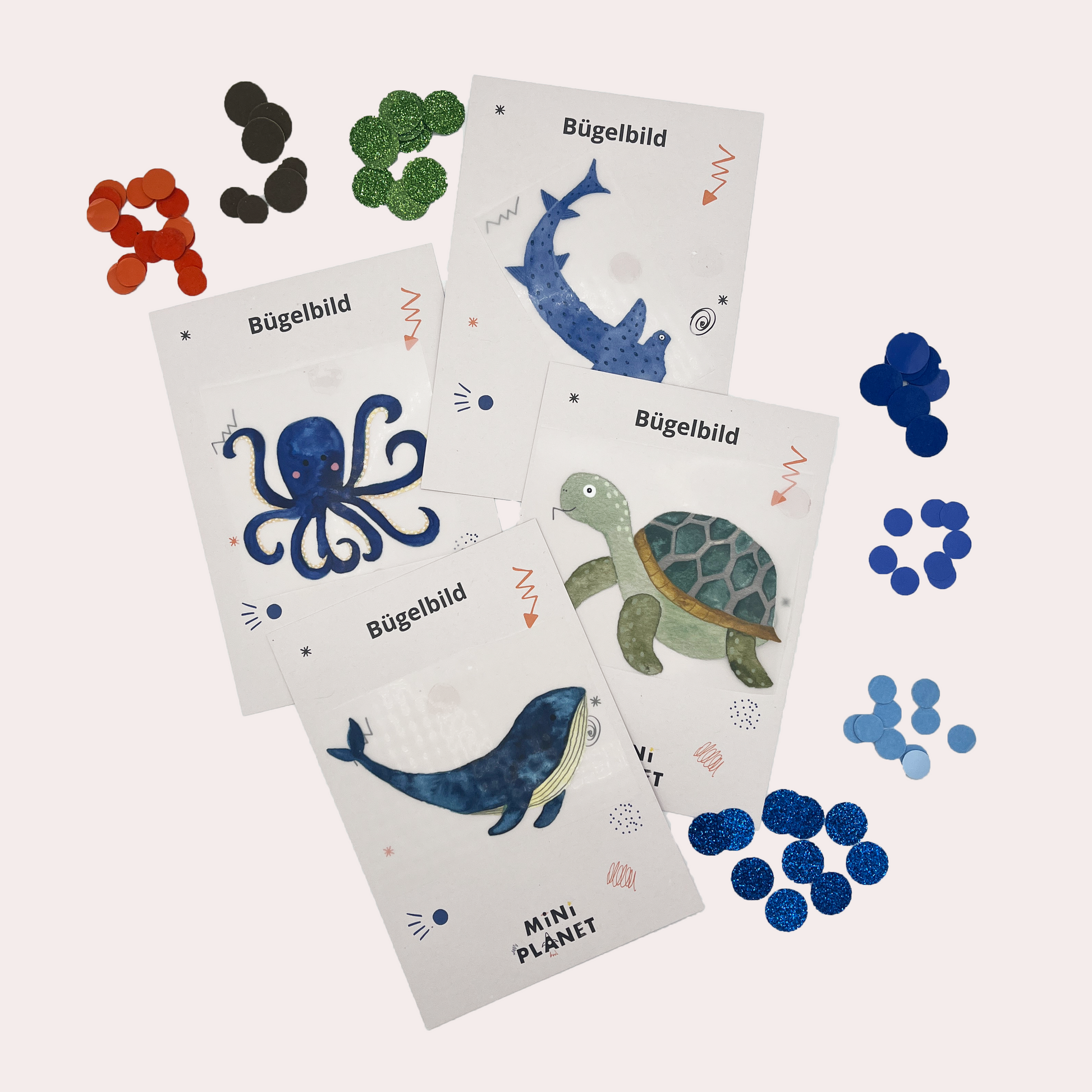 Inhalt: 4 Bügelbilder + ausreichen passendes Bügel-Konfetti (Abbildung beispielhaft, Auswahl individuell abgestimmt)